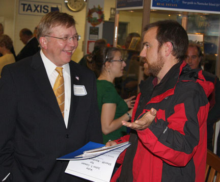 Then-Barnstable Town Manager John Klimm and Cape Cod Times Reporter